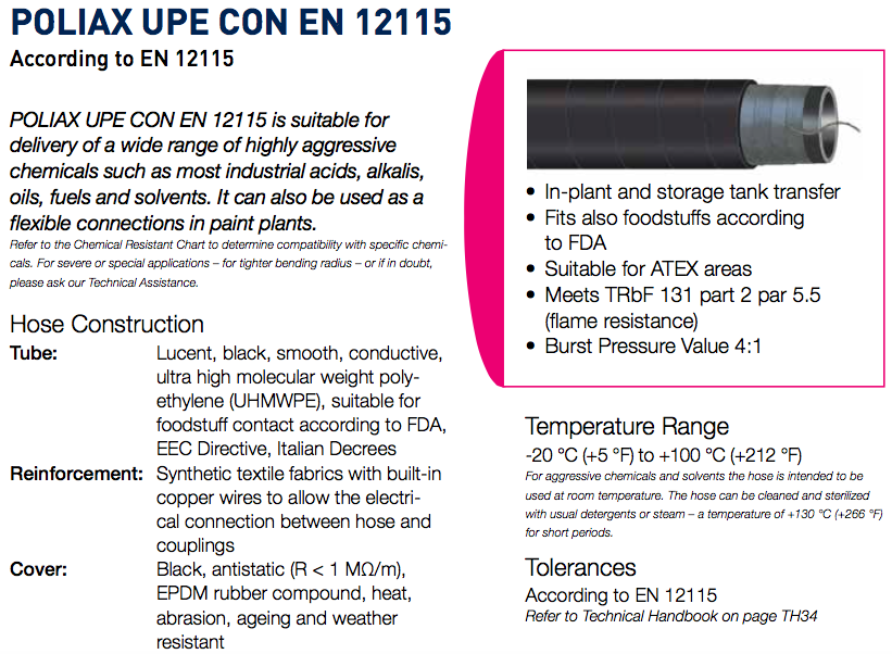 Home Produtos Óleo Hidráulica Mangueiras e acessórios Mangueiras Industriais Mangueiras para acidos e quimicosPOLIAX UPE CON EN 12115