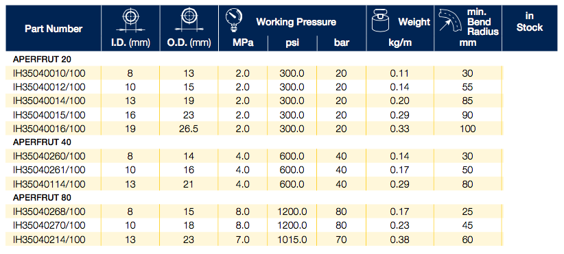 Home Produtos Óleo Hidráulica Mangueiras e acessórios Mangueiras Industriais Mangueiras multiuso APERFRUT 20-40-80 |