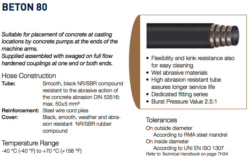 Home Produtos Óleo Hidráulica Mangueiras e acessórios Mangueiras Industriais Mangueiras para transporte de materiais BETON 80 |