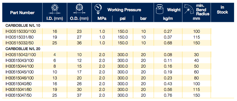 Home Produtos Óleo Hidráulica Mangueiras e acessórios Mangueiras Industriais Mangueiras para barcos e automoveis CARBOBLUE N/L 10-20 |