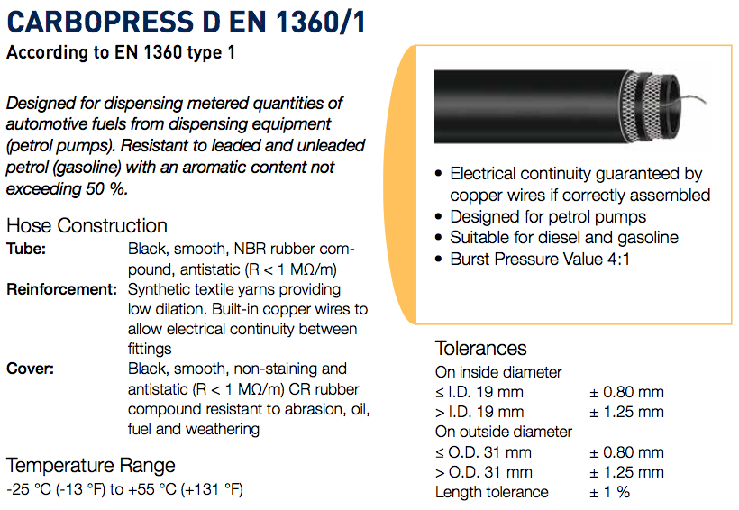 Home Produtos Óleo Hidráulica Mangueiras e acessórios Mangueiras Industriais Mangueiras para combustivel CARBOPRESS D EN 1360/1 |