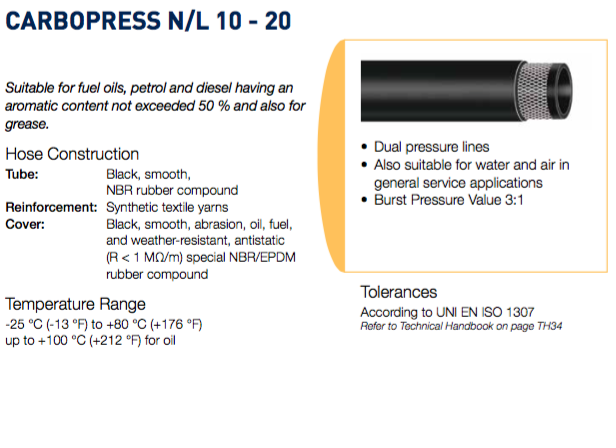 Home Produtos Óleo Hidráulica Mangueiras e acessórios Mangueiras Industriais Mangueiras para combustivel CARBOPRESS N/L 10-20 |