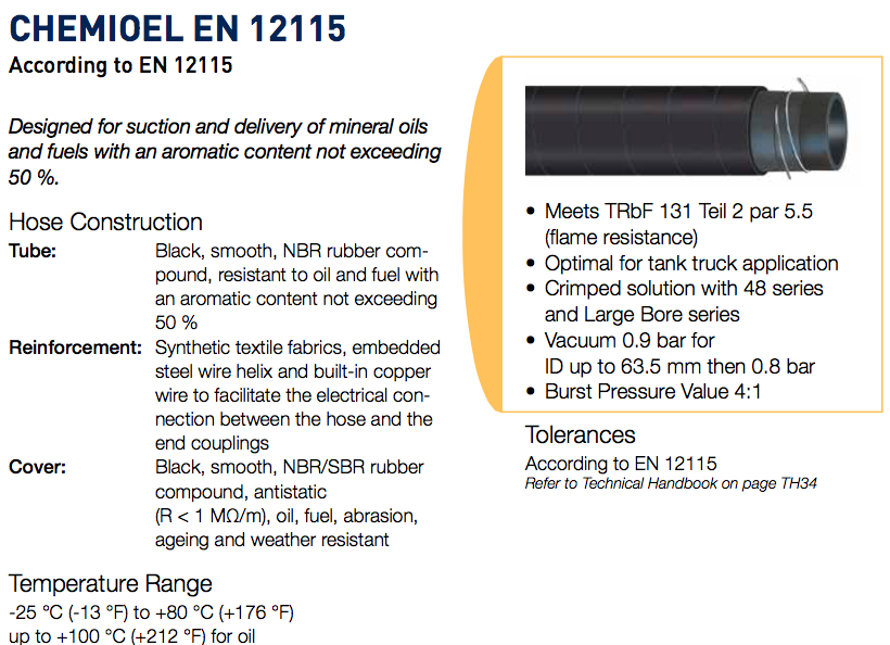 Home Produtos Óleo Hidráulica Mangueiras e acessórios Mangueiras Industriais Mangueiras para combustivel CHEMIOEL EN 12115 |
