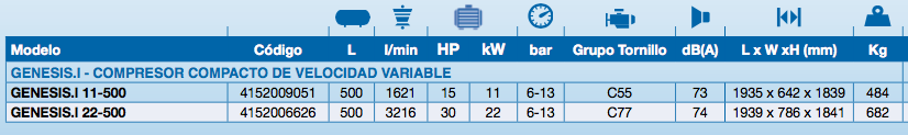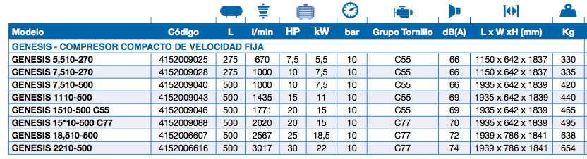 Home Produtos Pneumática Compressores Compressores de parafuso ABAC Compressores genesis |