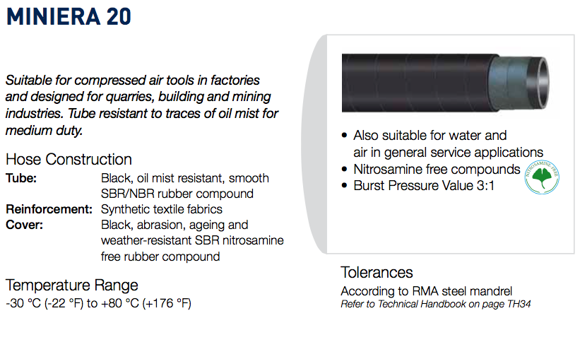 Home Produtos Óleo Hidráulica Mangueiras e acessórios Mangueiras Industriais Mangueiras para ar comprimido MINIERA 20 |