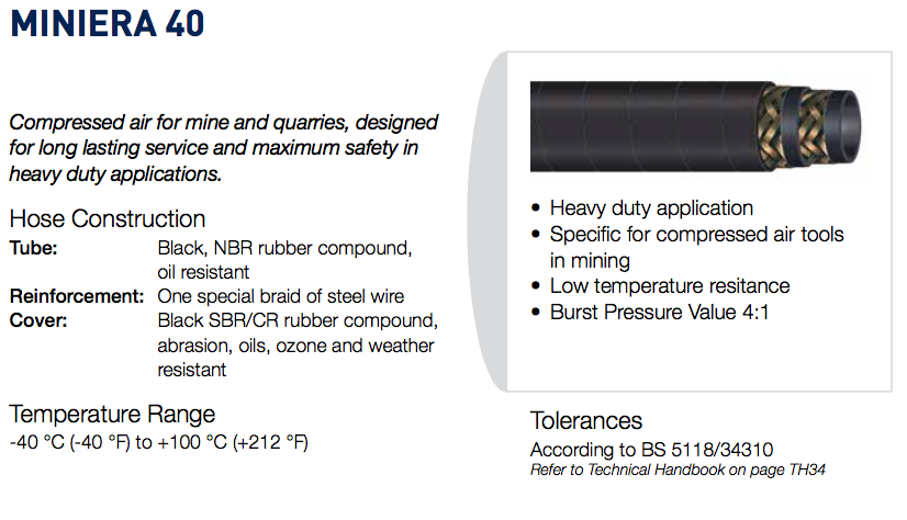 Home Produtos Óleo Hidráulica Mangueiras e acessórios Mangueiras Industriais Mangueiras para ar comprimido MINIERA 40 |