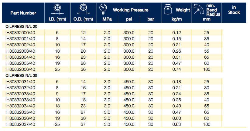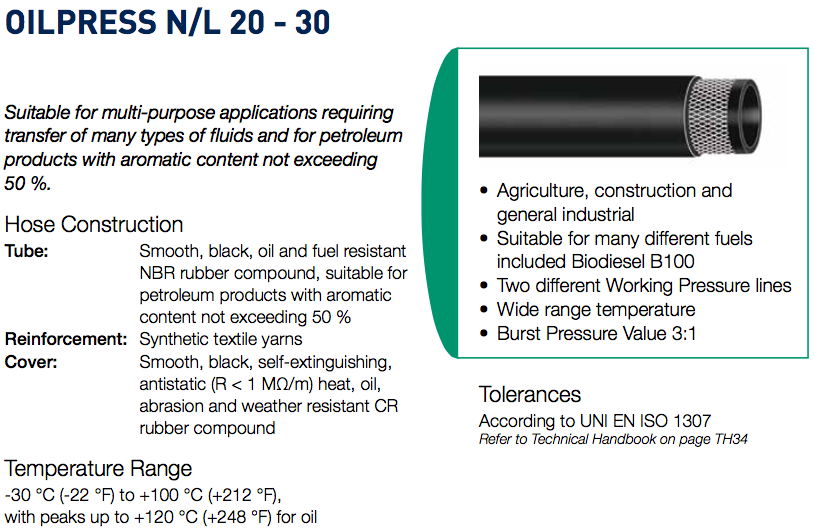 Home Produtos Óleo Hidráulica Mangueiras e acessórios Mangueiras Industriais Mangueiras multiuso OILPRESS N/L 20-30 |
