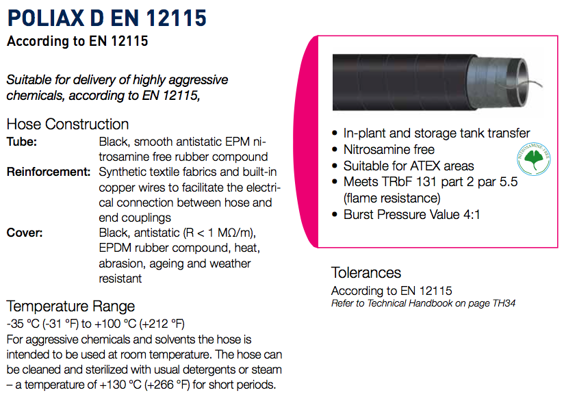 Home Produtos Óleo Hidráulica Mangueiras e acessórios Mangueiras Industriais Mangueiras para acidos e quimicos POLIAX D EN 12115 |