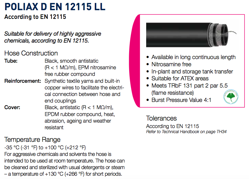 Home Produtos Óleo Hidráulica Mangueiras e acessórios Mangueiras Industriais Mangueiras para acidos e quimicos POLIAX D EN 12115 LL |