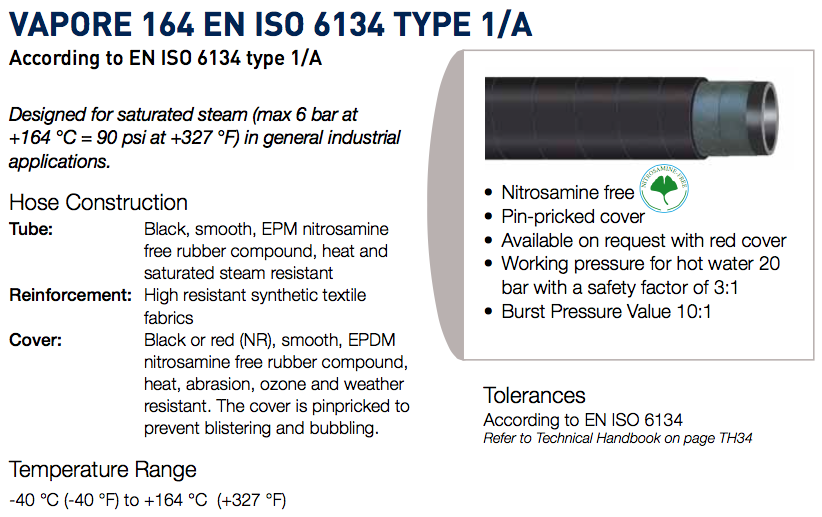 Home Produtos Óleo Hidráulica Mangueiras e acessórios Mangueiras Industriais Mangueiras para agua quente e vapor VAPORE 164 EN ISO 6134 |