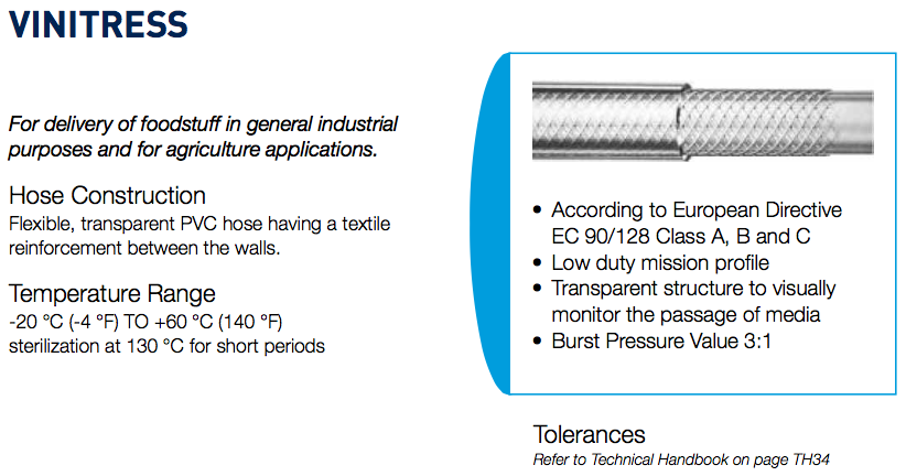 Home Produtos Óleo Hidráulica Mangueiras e acessórios Mangueiras Industriais Mangueiras para area alimentar VINITRESS |